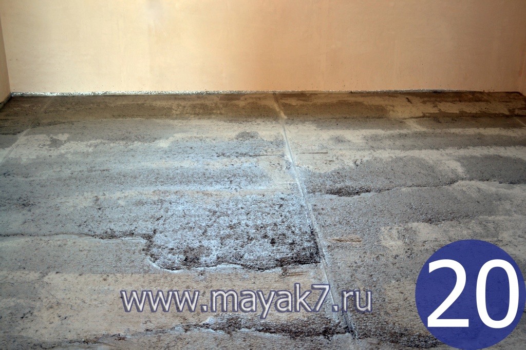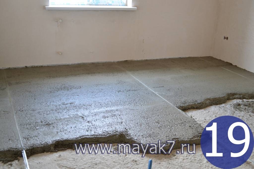 Выравнивание пола по маякам, изготовленным из раствора, происходит по следующей схеме:
