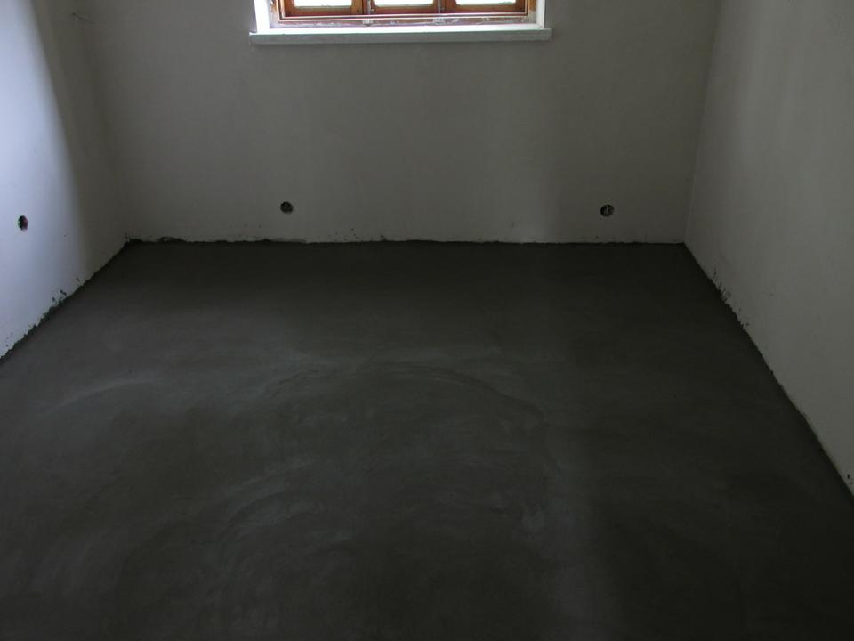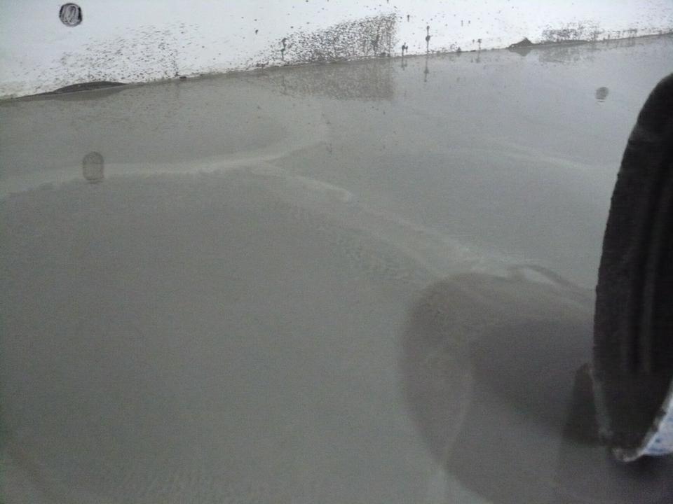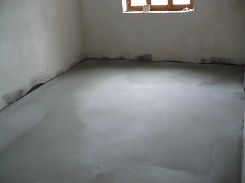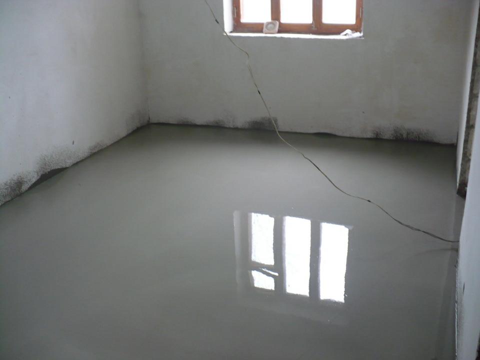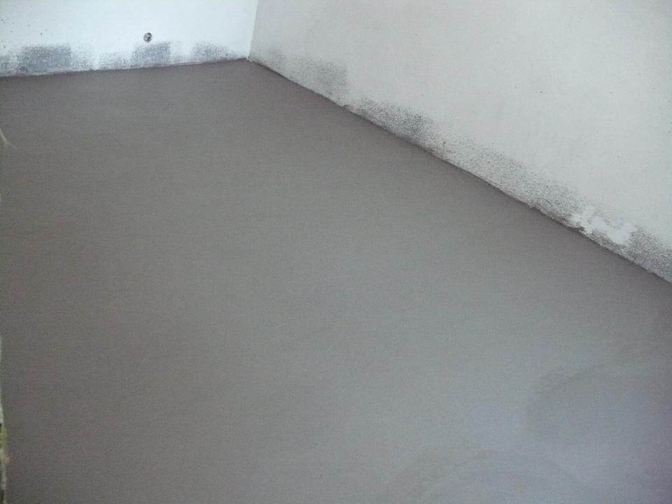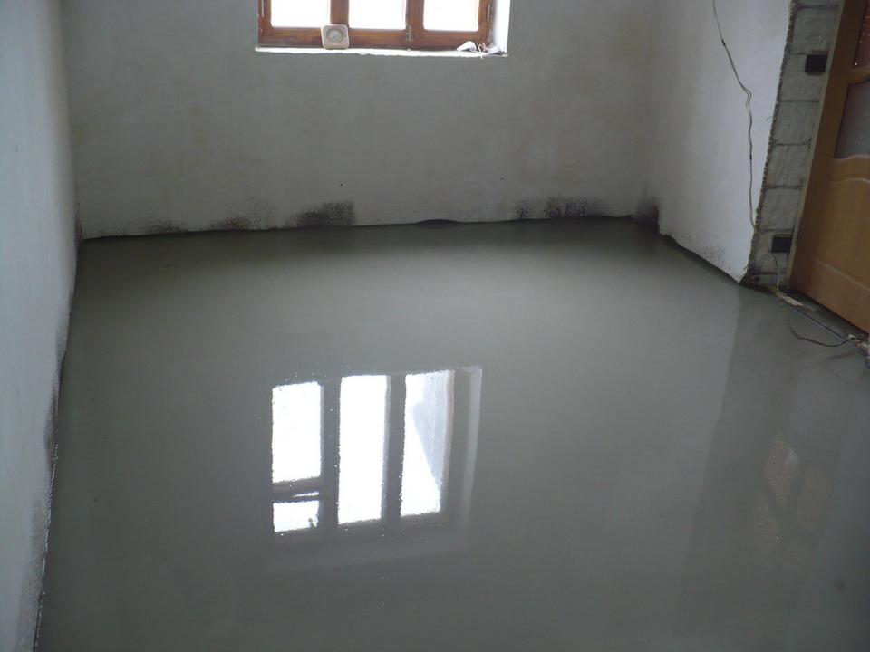 Шаг 3. После просушки грунтовочного слоя поверхность в проблемных местах заливается самонивелирующейся смесью.