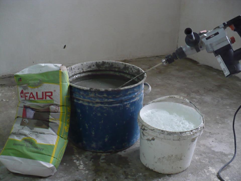 - Второй способ, когда мы сами смешиваем цемент песок и пластификатор для получения необходимого количества раствора.