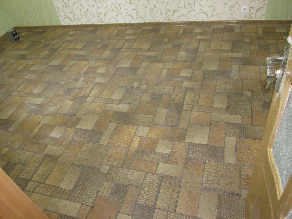 После высыхания жидкого стекла стелется линолеум или любое другое покрытие.