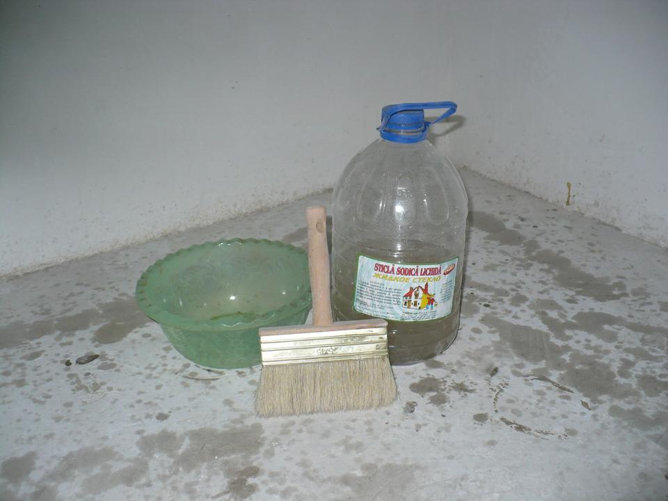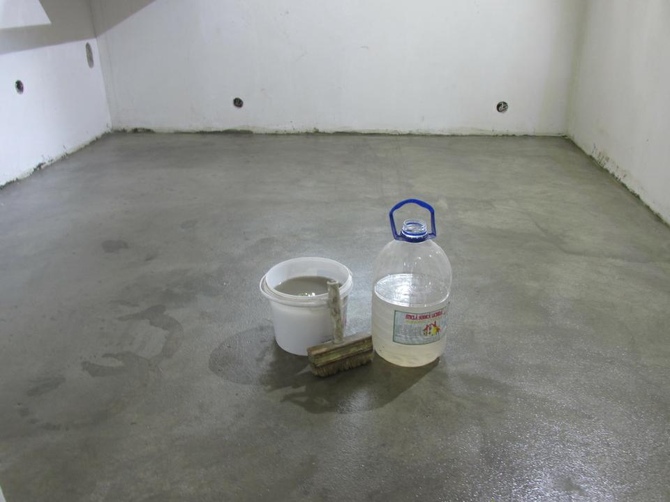 После того как выравнивающая стяжка высохла, для крепости дополнительно пропитываем ее жидким стеклом, разбавленным с водой в отношении 2 к 1.