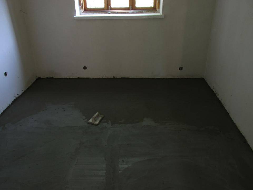 Если в качестве финишного покрытия пола планируется применить материал, чувствительный к малейшим неровностям чернового пола, например, ламинат, нужно залить поверх черновой стяжки еще один тонкий нивелирующий слой. Стяжку грунтуют. Для финишного слоя используют специальную смесь, которая называется самовыравнивающийся наливной пол, или готовят достаточно жидкий цементно- песчаный раствор с пропорциями 1:2,5. Смесь выливают на поверхность стяжки и распределяют равномерно по всей комнате с помощью правила, после чего позволяют ему полностью высохнуть.