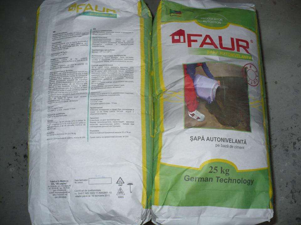 - первый способ, когда мы покупаем уже готовую сухую смесь какого-либо производителя и разводим ее на объекте водой и затем заливаем стяжку. При таком варианте желательно покупать сухую смесь у проверенного производителя и следовать инструкции на упаковке.
