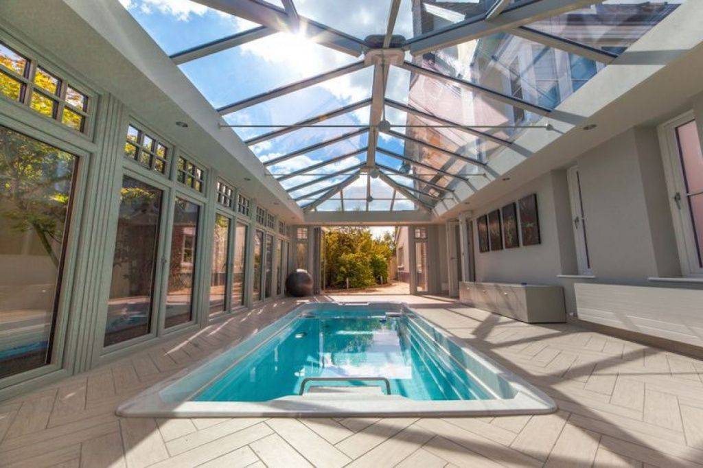 Металлические каркасы со стеклопакетами выдерживают значительную нагрузку и не уступают в надежности кровлям из профнастила и металлочерепицы. Стеклянная крыша довольно устойчива к ветровым и снеговым нагрузкам, герметична при правильном монтаже, а благодаря гладким поверхностям атмосферные осадки на ней не задерживаются. Если в верхней части помещения стеклянную кровлю оснастить открытыми люками, это позволит отводить теплый отработанный воздух наружу и обеспечит хорошую циркуляцию воздуха. Вариантов применения прозрачных кровель существует множество: практически любое пространство в доме можно эффектно преобразить с помощью такого архитектурно-планировочного решения. А обилие естественного света и возможность создать особый микроклимат позволяют обустраивать в таких помещениях зимние сады или оранжереи.