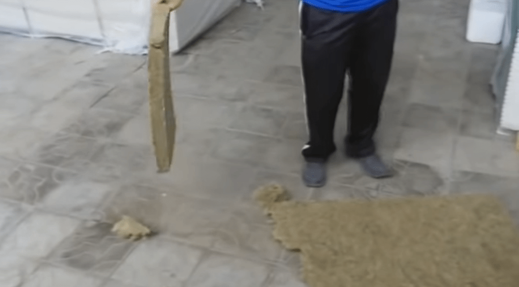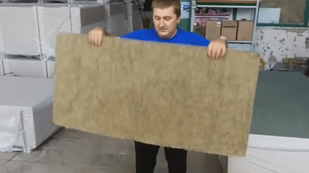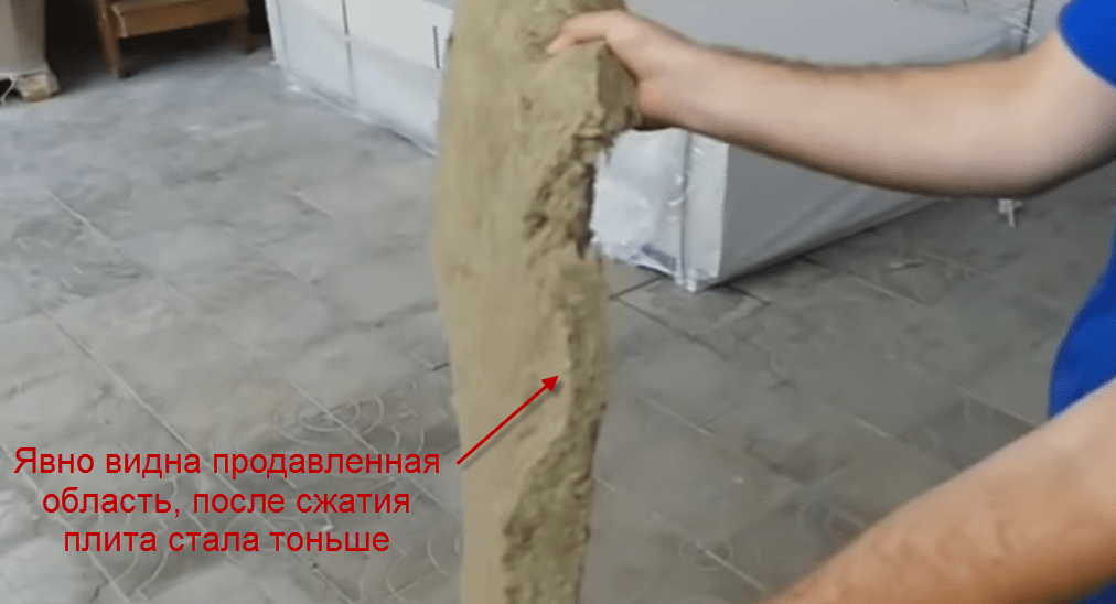 Плиту каменной ваты проверяем на прочность, для этого берем ее в двух местах и встряхиваем: