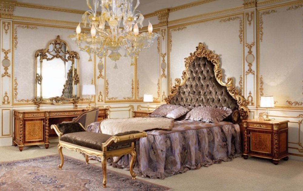 Мода пополняется таким понятием как мебельный гарнитур, знать заказывала обстановку именитым мастерам. Столы с мозаикой, кресла с художественной резьбой изготавливались вручную, огромные кровати возводились на подиум, украшались балдахинами. Лежа в кровати, вельможа порой принимал гостей, поэтому ее изголовье тоже украшалось ажурными деталями, золочением, драпированными занавесями.