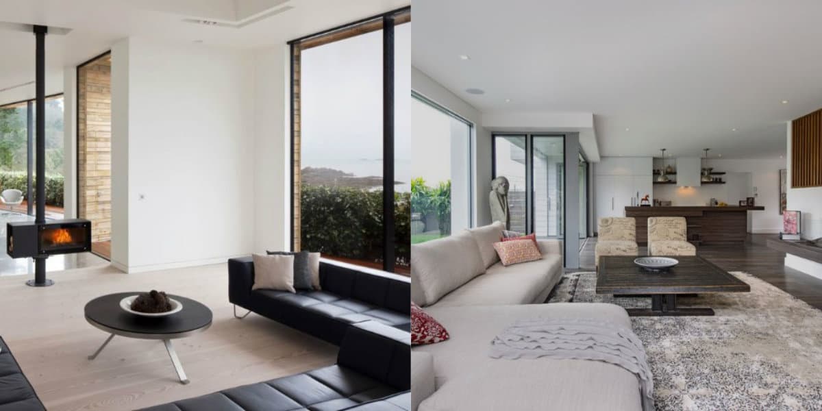 Минимализм в интерьере сильно зависит от света. Вот почему окна следует сделать максимально высокими и широкими, стекла вставить в простые гладкие прямоугольные рамы и ни в коем случае не вешать тюль с суетливым рисунком или помпезные шторы.