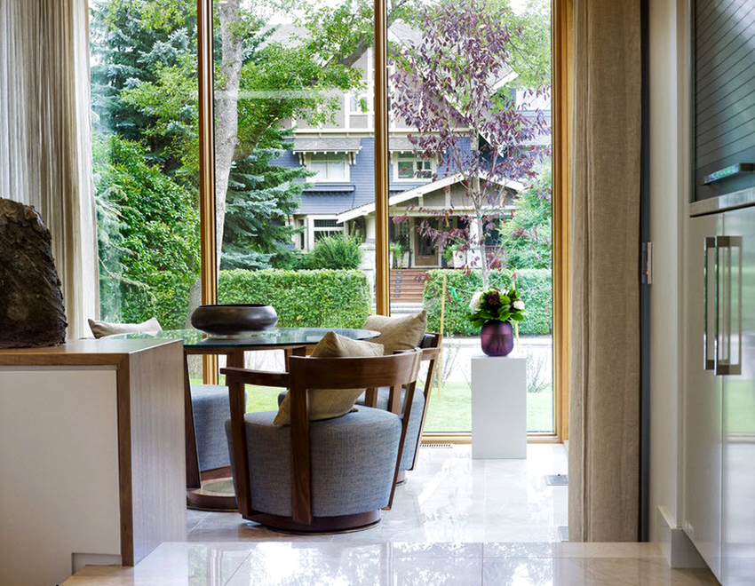 К интерьеру в стиле модерн отлично подходят панорамные окна