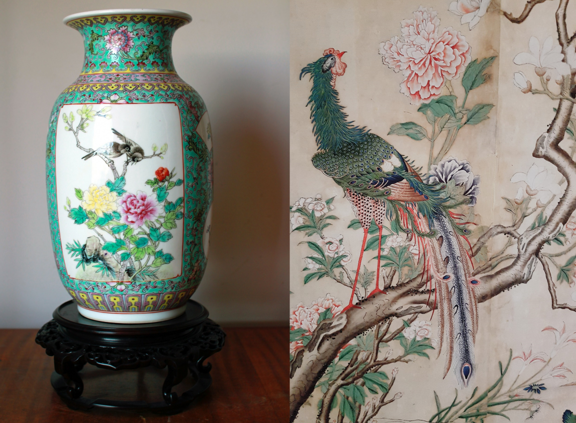 Экзотические сюжеты из Поднебесной приплывали на торговых судах. Это были шёлк, фарфор и лакированные ширмы, а на них львы и птицы, пионы и хризантемы, цветущая слива и китайские пагоды.