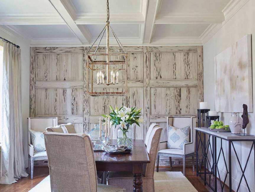 Различные элементы декора распределяют по всему помещению, а состаренного вида аксессуары помогут создать в нем атмосферу обжитости и домашнего уюта.
