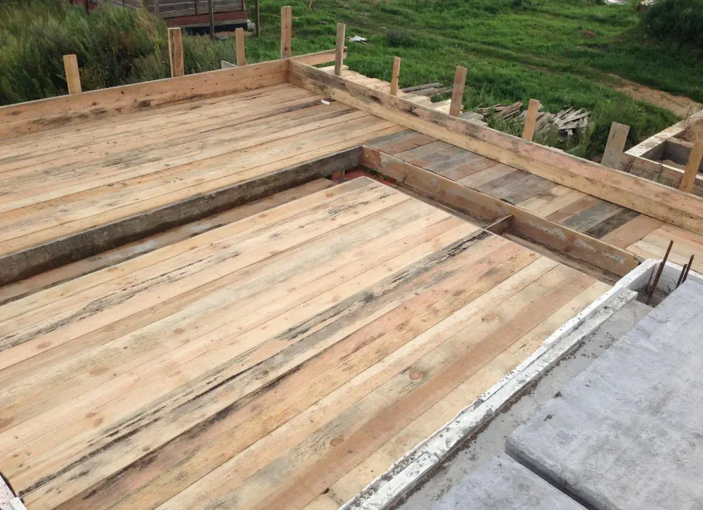 В последнем случае монтаж происходит с применением материалов, которые становятся затем частью перекрытия, например, с такой целью используется профлист или пенополистирол. Съемную опалубку можно передать или взять в аренду — на нужное количество дней. В качестве материала могут быть использованы обычные дощатые конструкции, алюминиевые и стальные, фанерные опалубки.