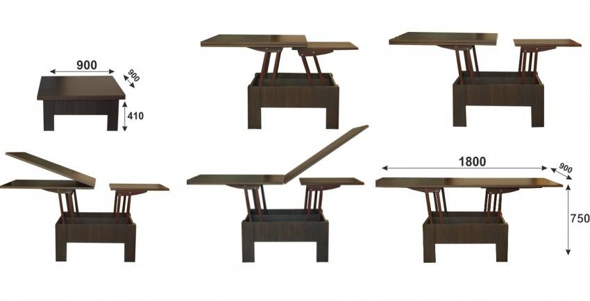 Их механизм отличается своей простотой и удобством. Сейчас производители представляют и автоматический столик-трансформер, который не потребует от вас приложения лишних усилий для его раскладывания.