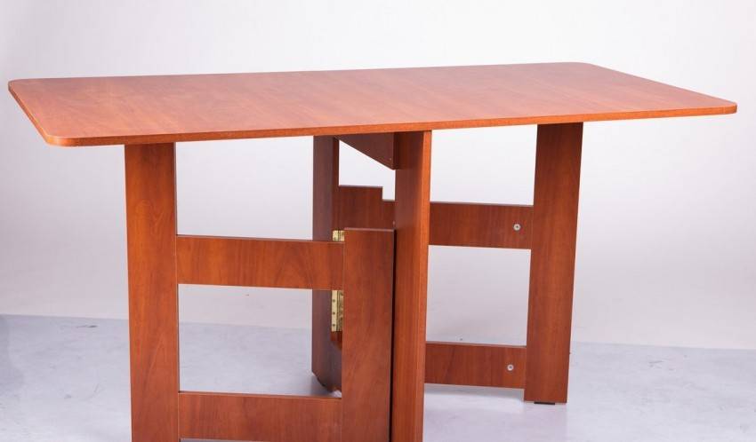- стол книжка — столики с книжной системой раскладывания считается самым простым в использовании. Сложенная конструкция занимает совсем мало места, а при раскладывании образует большую конструкцию, которую можно использовать в качестве обеденного места или для приема гостей. По виду она напоминает гладильную доску из-за схожести ножек.