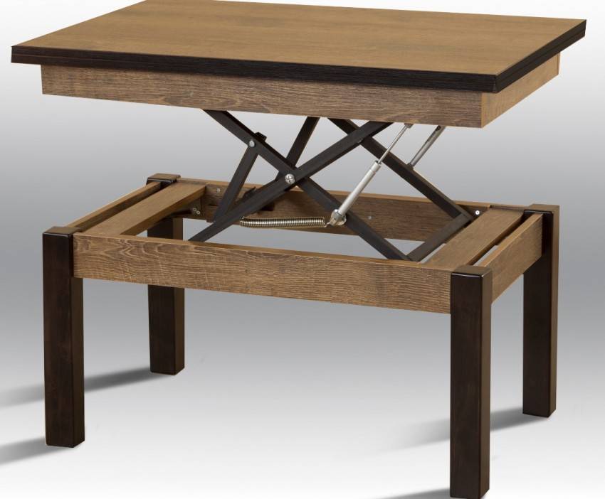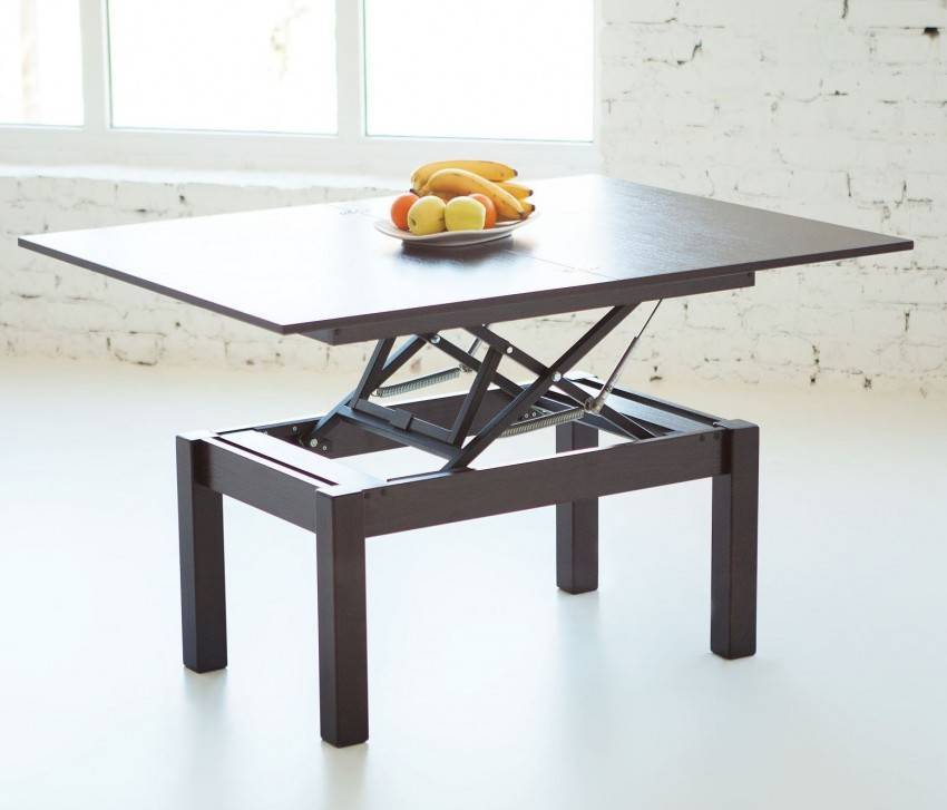 Для малогабаритного жилья вам просто не обойтись без подъёмного трансформирующегося стола. В обычном положении он представляет из себя привычный для всех журнальный стол. Однако с приходом долгожданных гостей его можно раскладывать.