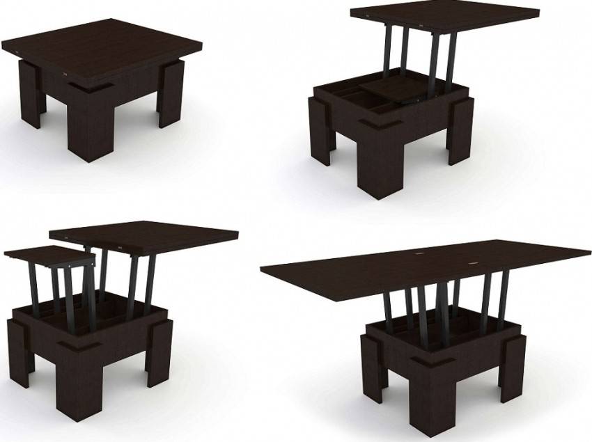 - увеличение высоты — тут происходит приподнимание столешницы за счет поднятия ножек. Эта система трансформирования относится к вертикальным системам превращения;
