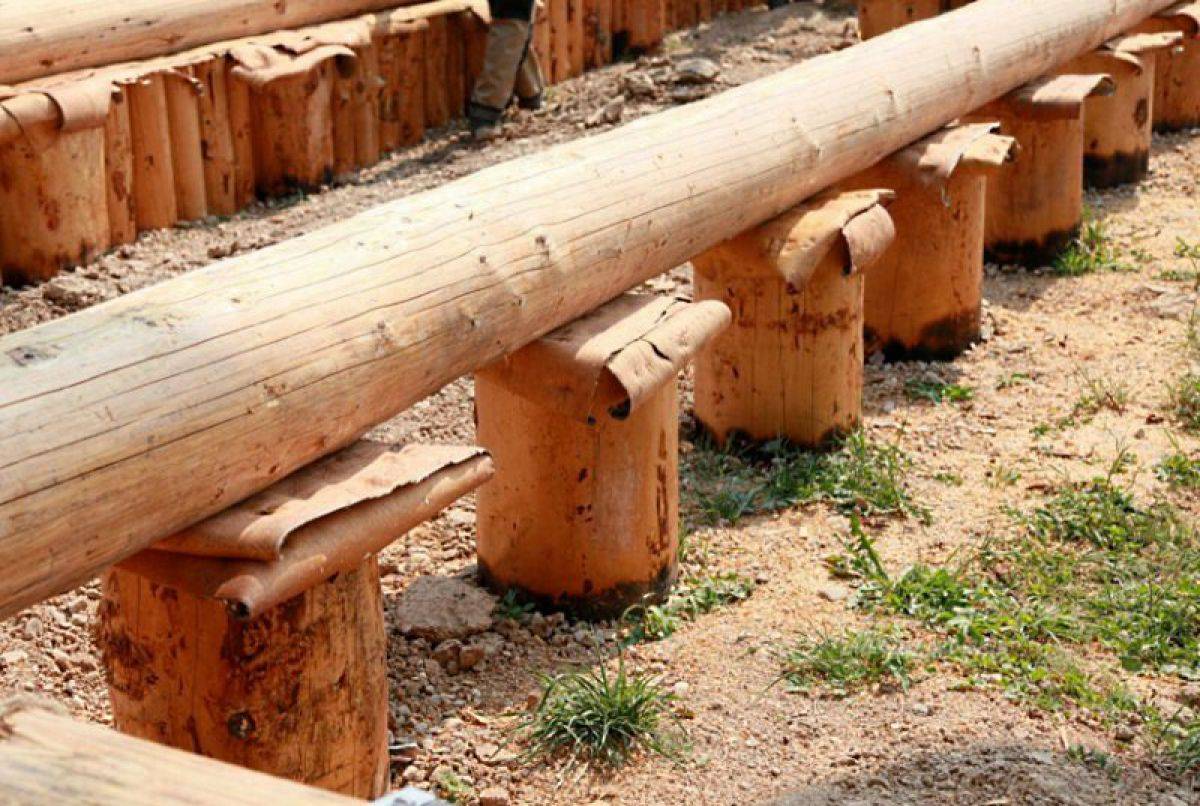 - сваи из дерева, которые предварительно перед монтажом обрабатываются антисептиком;