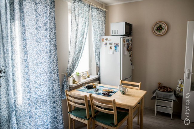 Вы не спите на кухне и солнце утром вас там не разбудит. Телек там тоже не смотрите и на бликующие экраны пофиг. От лишних взглядов спасает сам балкон.