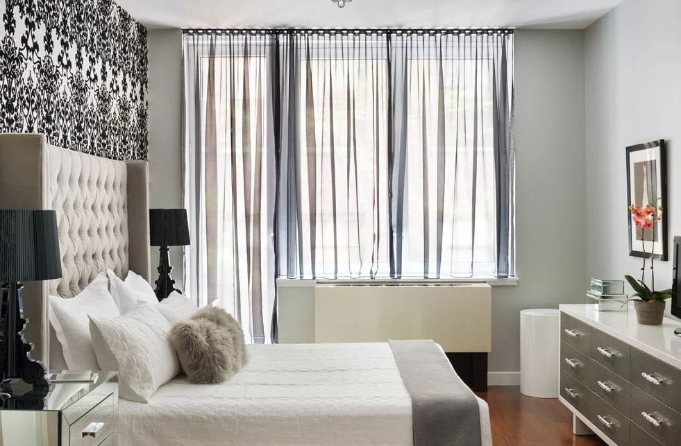 Даже если большая часть интерьера спальни довольно спокойная и нейтральная, занавески могут стать местом для тонких цветовых акцентов или интересных узоров.