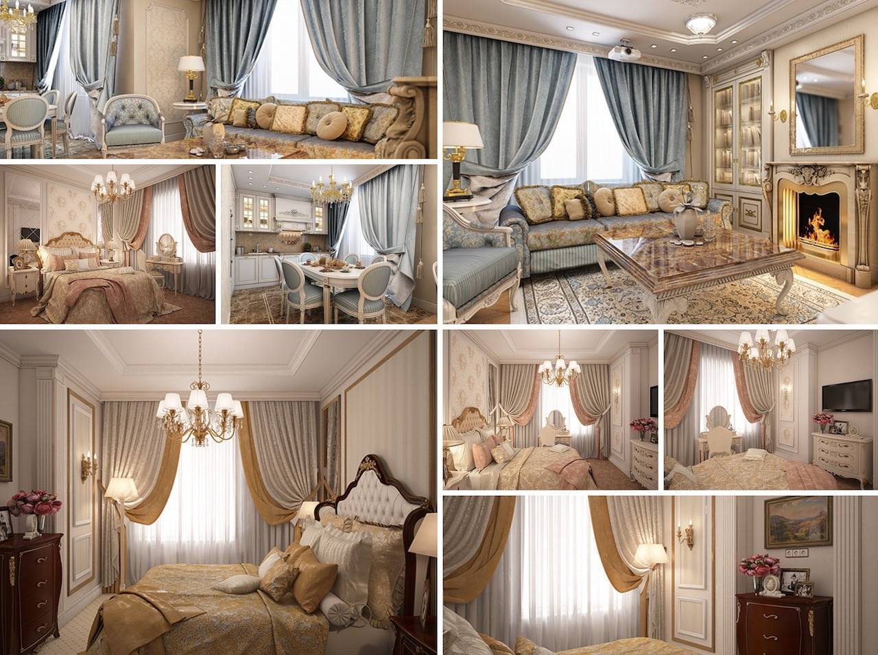 Этот пункт в какой-то мере связан с предыдущим. Дело в том, что классические стили требуют достаточного пространства, то есть большой площади, высоких потолков. Массивные шторы в таких интерьерах выглядят органично.