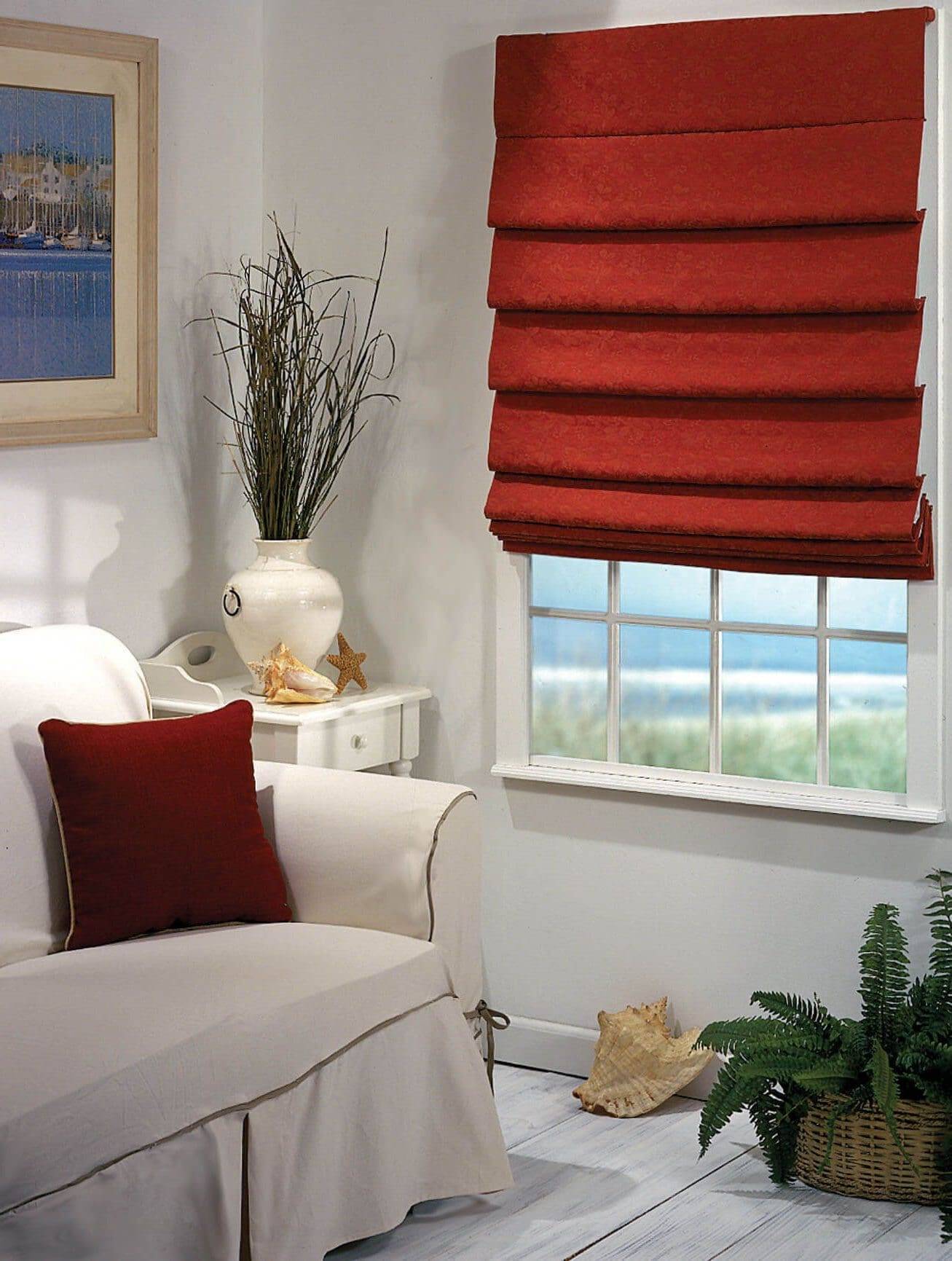 Этот вид занавесок относится к популярным, но теперь особенно модным видам штор. Римские шторы прекрасно держат заданную форму, если их развернуть, они будут выглядеть, как цельное полотно ткани. Готовая штора – это горизонтальная складка, которая располагается параллельно карнизу.