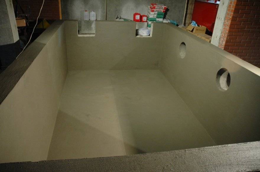 Штукатурный раствор выбирается отдельно под чашу конструкции и для обработки стен помещения, если бассейн размещен в здании.