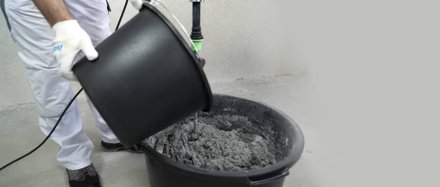 Важно вот что: выставляйте минимальную скорость, не больше 300 оборотов в минуту. Если перемешивать быстрее — раствор будет насыщаться воздухом и быстрее схватываться
