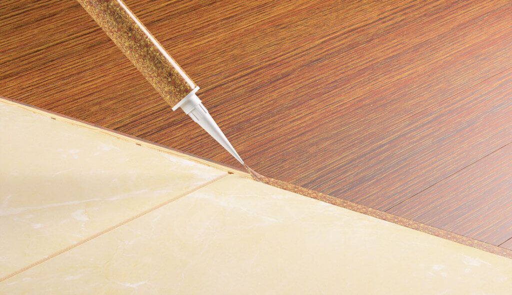 Пробковый герметик поможет упростить процесс монтажа, так как в нем уже есть защитные компоненты для ламинатного покрытия, которые будут препятствовать впитыванию влаги. Шов будет эластичным и хорошо заполнить все неровности появившиеся из-за неравномерного реза. Ширина шва не будет влиять на качество. Единственным недостатком является наличие единого цвета – коричневого, а это подойдет не для всех оттенков плитки или ламината.
