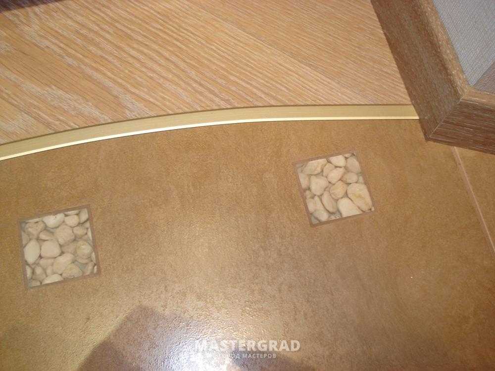 Эта фурнитура способна резко разграничить пространство и создать плавный переход между покрытиями. Пол будет выглядеть довольно аккуратно и органично.