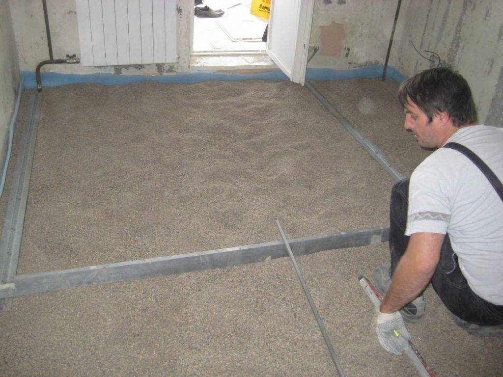 - Удаляют маяки, а образовавшееся пространство засыпают керамзитовым слоем. Разрешено оставлять маяки.