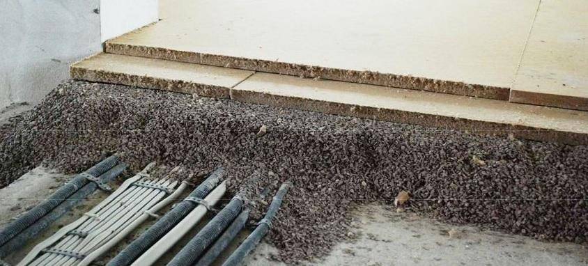 Это даёт возможность скреплённым листам «плавать» на засыпке округлой формы в пределах площади, ограниченной стенами помещения. Трубы, кабели, цементные или гипсовые «лепёхи» на основании мешать не должны.