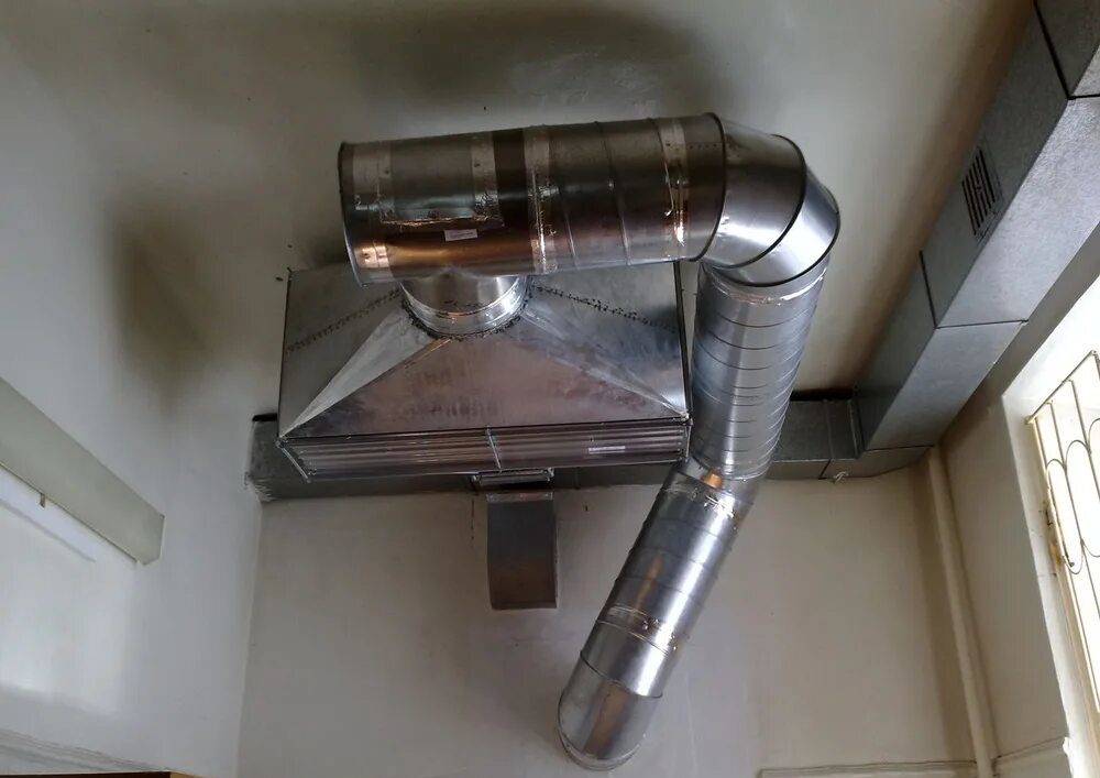 - оцинкованная труба, подходящая по диаметру к воздуховоду вентиляции, фрагмента, длины 1 метр будет вполне достаточно,