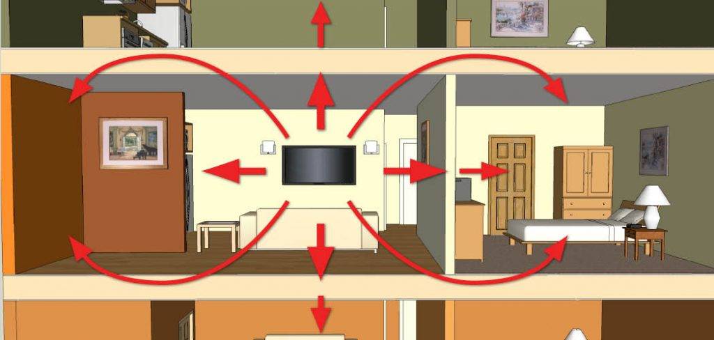 Распространение звука в квартире от телевизора Звукоизоляцию обычно устанавливают на потолок и стены
