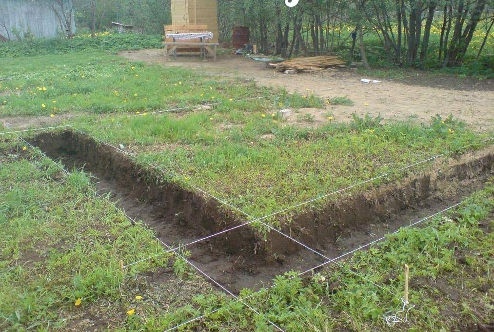 2. Копку котлована для заглубления ленты (до 30 см + высота подушки). В случае висячего ростверка в траншее удаляется часть верхнего покрова и корни растений.