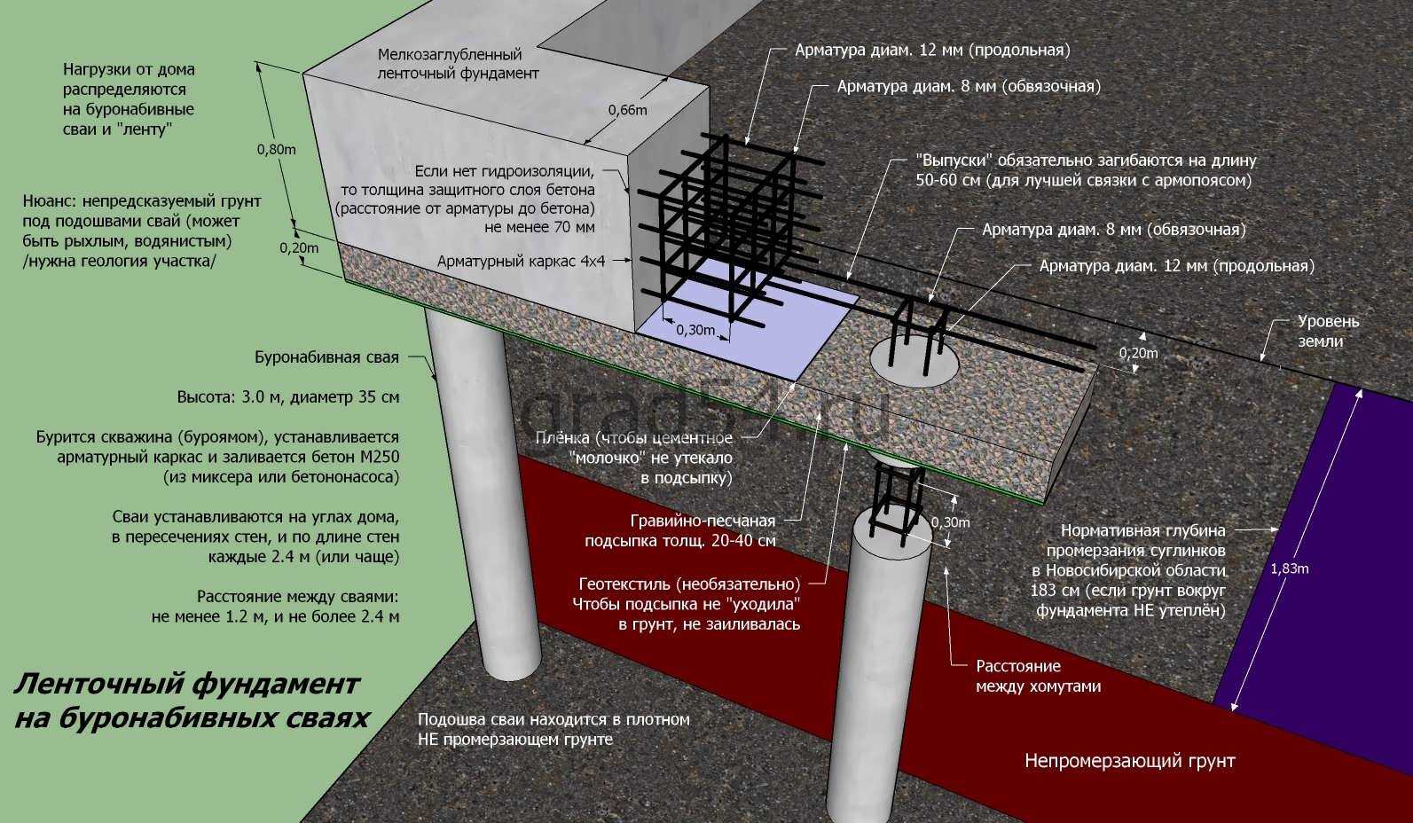 В большинстве случаев используется мелкозаглубленная методика с применением буронабивных свай.