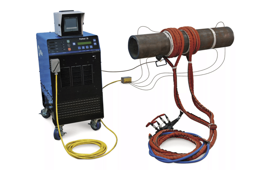 Индукционный подогрев является наиболее современным решением, но при этом самым дорогостоящим (несколько миллионов рублей). Подогрев при помощи индукционных установок применяют, как правило при автоматической сварке. Использование индукционного подогрева при ручной сварке существенно увеличивает стоимость и трудоемкость сварочных работ. Данный подогрев можно применять, как при тонкостенной, так и толстостенной сварки труб. Нужно учитывать, что такой подогрев при РЭД сварке толстостенных труб (от 27мм.) не целесообразен, так как сварка ведется достаточно продолжительное время и при этом необходим сопутствующий подогрев зоны стыка. Применение установки в таком случае приведет к постоянным перегревам во время сварки.