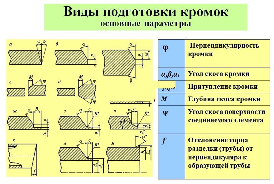 При сварке различают следующие виды свариваемых деталей лист — Л (Р), труба — Т (Т), стрежень — (С) и их сочетания между собой лист с трубой (Л + Т), трубы с отводом (Т + О), трубы с трубой через муфту (Т + М + Т), лист со стержнем (Л+С).