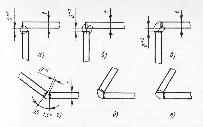 Рис. 5. Нахлесточные (а, б) и торцовое соединения (в)