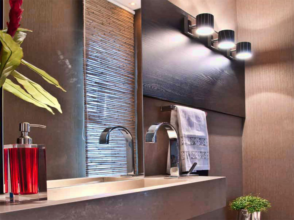 Цвет стен также играет роль. Если облицовка темная, осветительных приборов требуется больше. Некоторые люди предусматривают в ванных комнатах два вида светильников. Одни обеспечивают рабочее освещение, то есть позволяют выполнять все виды деятельности, которые обычно производят в данном помещении (мытье, стирку, бритье и так далее).