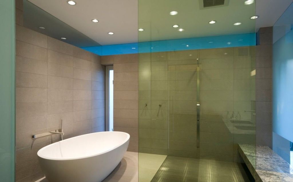 Итальянские лампы отлично впишутся в современные интерьеры: хай-тек, техно и другие. При этом свет при их использовании чаще бывает холодным. Это отличное решение для просторных ванн, но не всегда оптимальное – для камерных интерьерных композиций