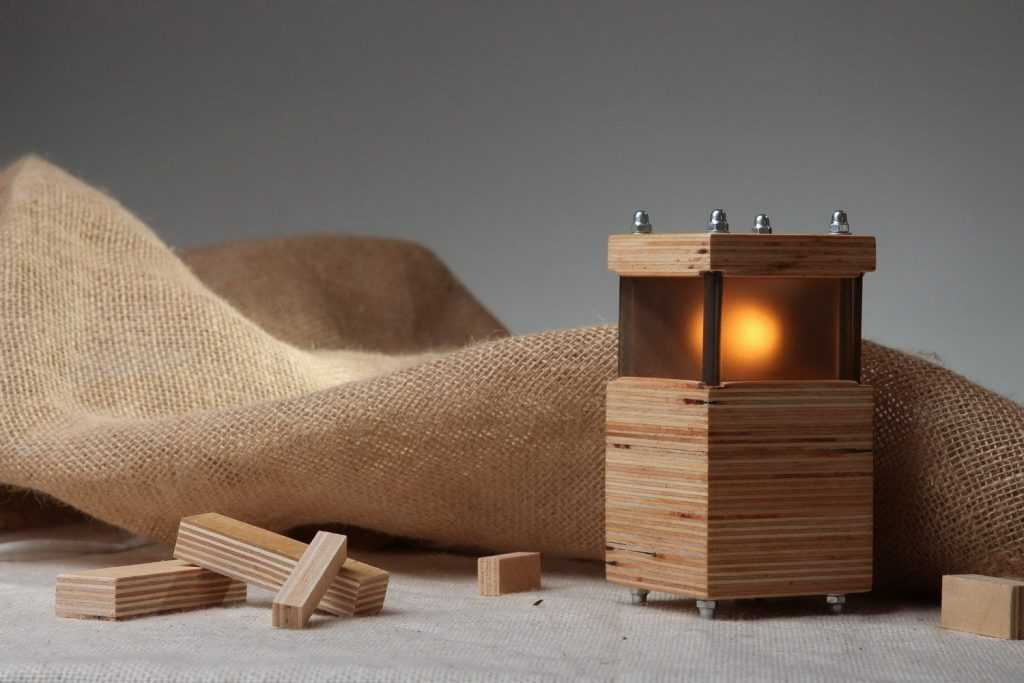 Деревянные источники света достаточно распространены, так как изготавливать их из дерева легче, чем из других материалов. Дерево позволяет придать прибору любую необычную форму.
