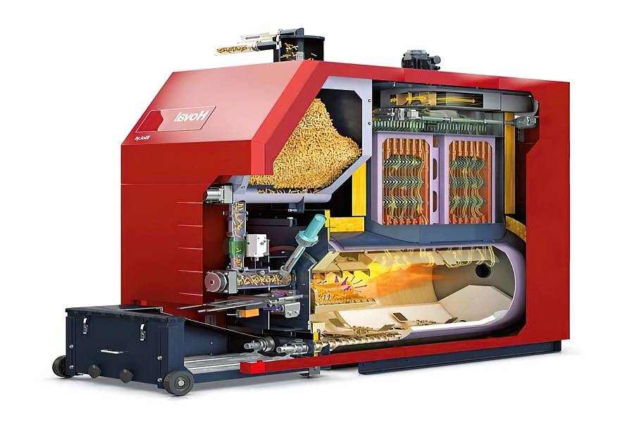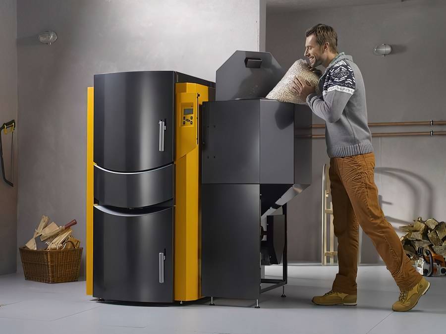 Наиболее технологичны в этом плане отопительные агрегаты, целенаправленно рассчитанные на применение специального вида топлива — брикетов и пеллет. В последнем случае возможна установка бункера, а также механизмов автоматической подачи горючего и удаления золы. При наличии подобного оборудования владельцу дома придётся посещать котельную довольно редко, от 3-4 дней до нескольких недель, всё зависит от вместительности накопителя. Проблемы с образованием нагара и дёгтя также исключаются: подготовленное топливо обладает предельно низкой влажностью и не вызывает конденсации влаги из вытяжных газов.