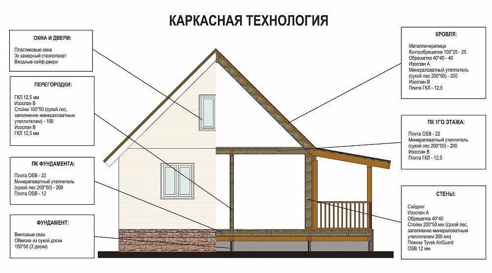 Конструкция каркасного дома