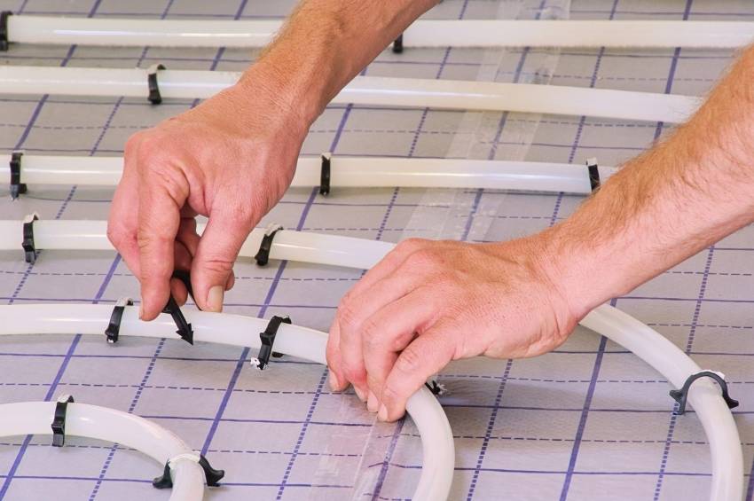 Для уменьшения трудозатрат удобно использовать специальные маты с креплениями труб для водяного пола