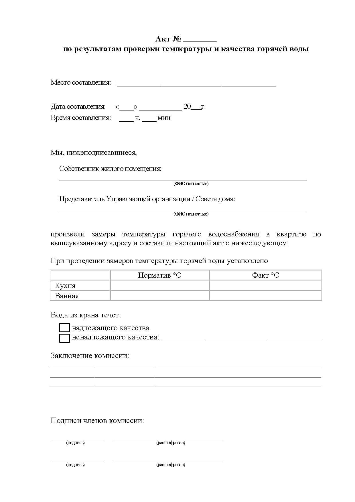 Несоответствие температуры воды, зафиксированному СНиП нормативу, необходимо оформить в письменном виде. Для этого нужно составить акт.