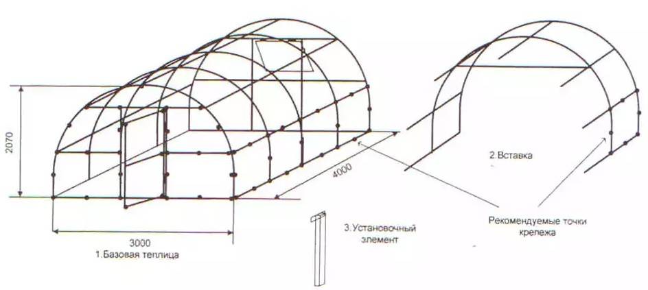 Ниже на рисунке показана схема стандартной теплицы из профиля.