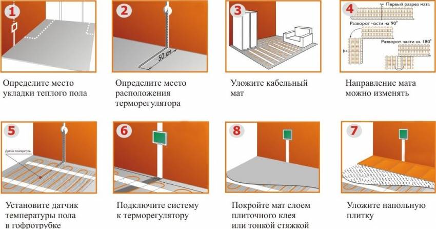 правильно положить кабель или нагревательный мат, технология укладки которых