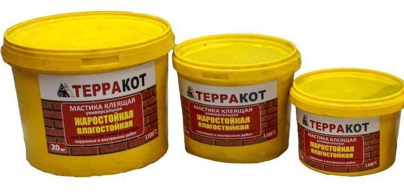 - Терракот. Сухие смеси для приготовления клеевого состава. Отлично подходит для облицовочной плитки и природного камня. Способен выдерживать жар до 250 оС.