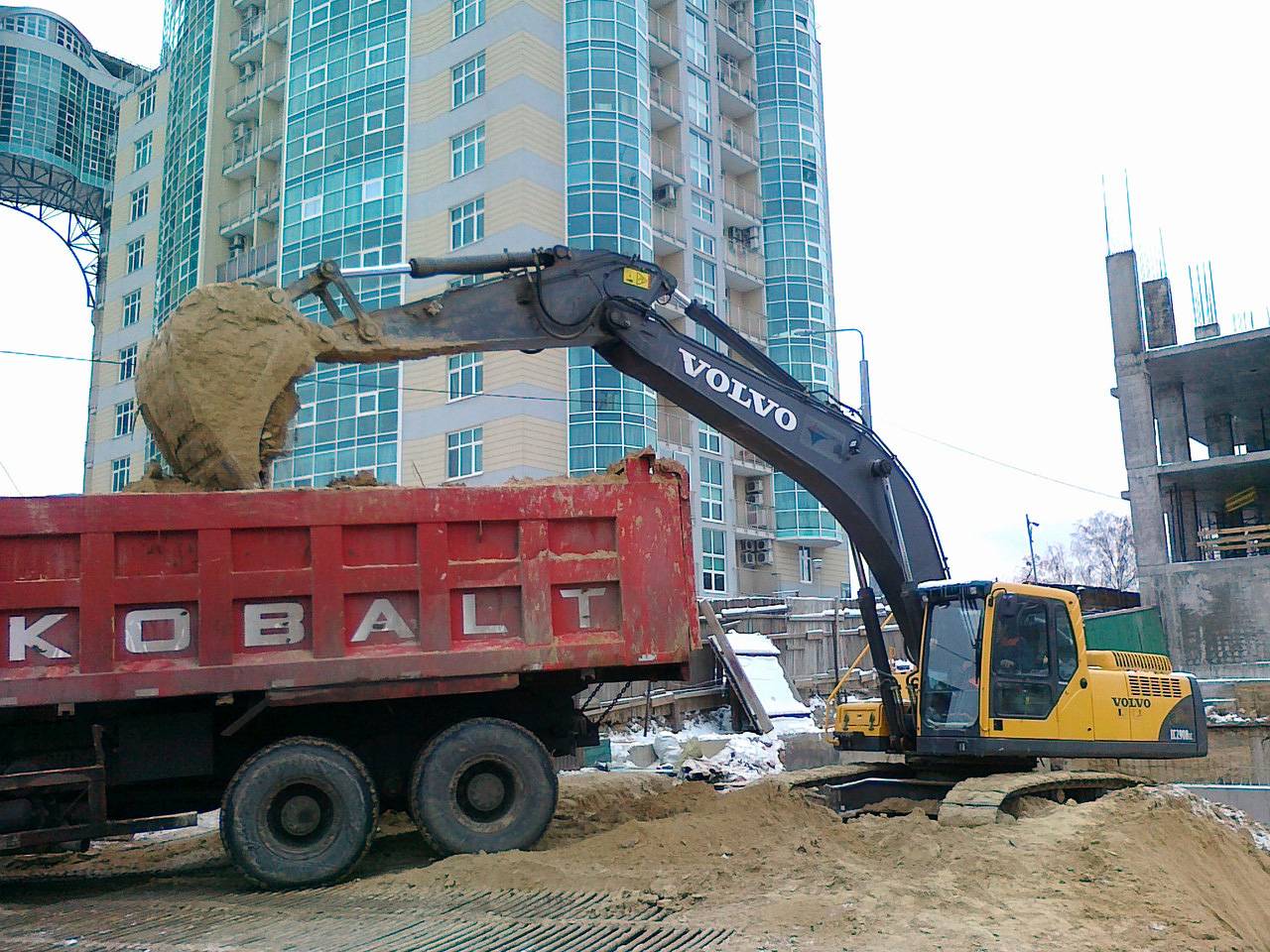 После завершения подготовительных действий спецтехника приступает к основным земляным работам на котловане. Высокоэффективная механизированная разработка котлована экскаватором позволяет выполнить выемку на полный объём котлована в кратчайшие сроки. Вынутый грунт частично остаётся в пределах строительной площадки для обратной засыпки пазух на этапе строительства здания. Объём оставляемой породы известен из ранее проведённых по проекту расчётов. По остальному объёму производится вывоз грунта самосвалами на площадку утилизации.