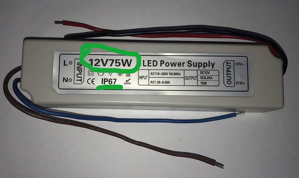 - Номинальным током на выходе или уровнем мощности. Этот критерий не может быть меньше, чем суммарная потребляемая мощность всего источника света. Специалисты советуют рассчитывать показатели мощности с некоторым запасом.