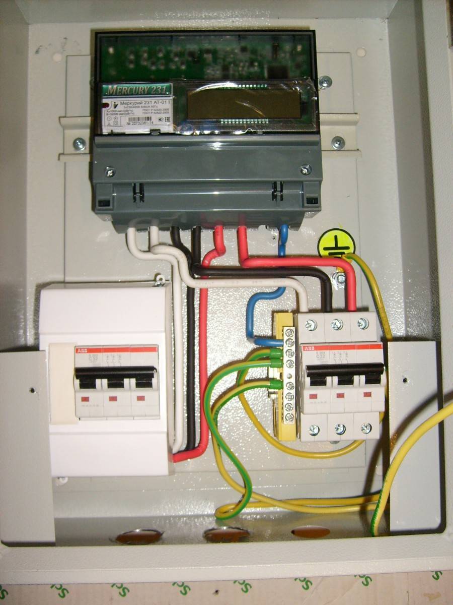 К счетчику подключается проводка, которая ведет на распределительный щит, от которого осуществляется подача электроэнергии к потребителям